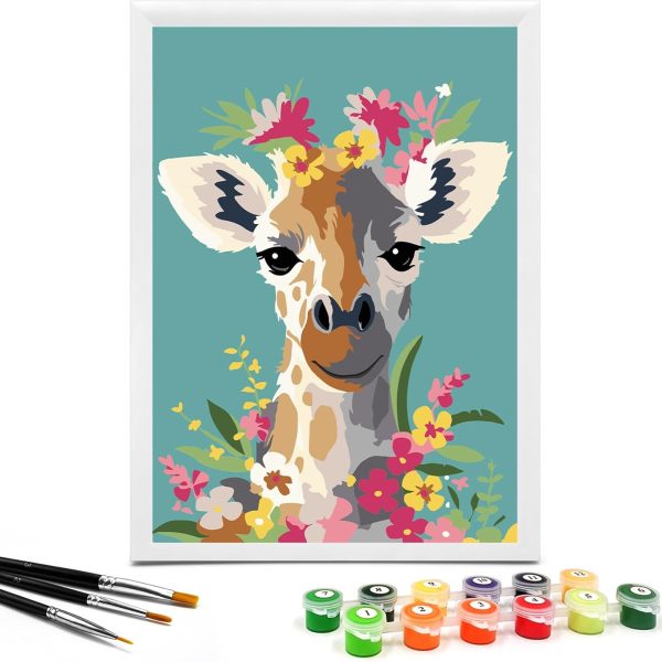 Paint by Numbers for Kids Ages 4-8 with 7X9.5 inch Pre-Printed Cardboard,12 Acrylic Paint Pots and 3 Painting Brushes, Craft Gift Room Decor for Children,(Giraffe with Garland)