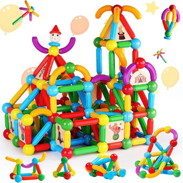 80PCS Magnetic Blocks – Build Set, Magnetic Building Blocks Toddler Toys Sensory Outdoor Toys for 3+ Year Old Boys & Girls, Kids Toys for Ages 4-6 6-8 5-7