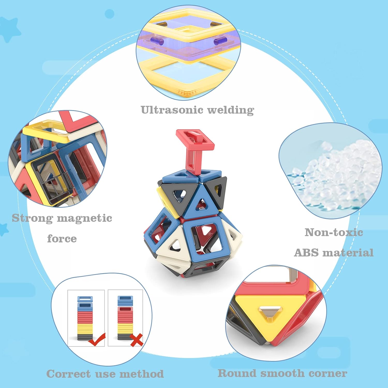 - Educational & Fun: Magnetic tiles are ideal for educational toy products, which help kids develop science, logical thinking, 3-D space, math, creativity thinking, motor skills, color theory, teamwork, problem solving and more. Discover new fun with this toy designed for unlimited imagination.