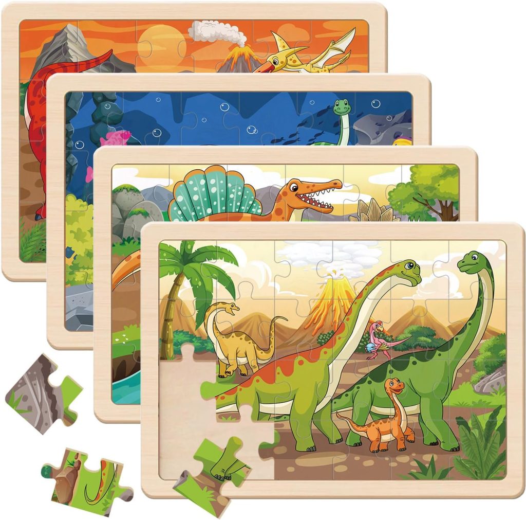 4 Pack Christmas Wooden Puzzles for Kids Toddlers Jigsaw Puzzles Christmas Stocking Stuffers Toys Xmas Party Favors