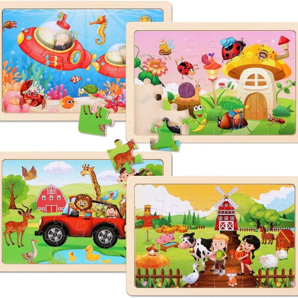 Wooden Toddler Puzzles for Kids Ages 2-4, Toys for 3 Year Old, Animal Toddlers Toys Ages, 4-Pack Learning Toddler Puzzle