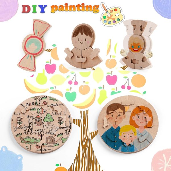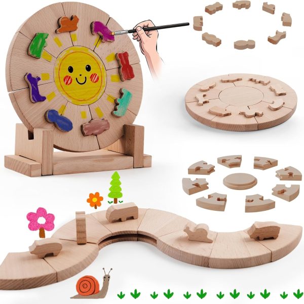 Wooden Puzzles for Toddlers 3-5, Solid & Thick Beech Wood, Blocks & Puzzle 2-in-1, Animal Shapes, Display Stand, DIY Painting, Preschool Learning, Interlocking Toys, Boys Girls Ages 3-8