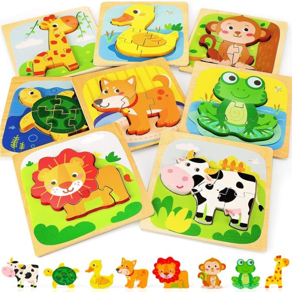 Wooden Puzzles Toddler Toys Gifts for 1 2 3 Year Old Boys Girls, Animal Jigsaw Puzzles Toys, Learning Educational Christmas Birthday Gifts for Girls Boys Ages 1-3